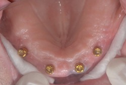 By placing dental implants into the gums, we are able to provide physical retention for the denture. These attachments are called abutments. The abutments ‘CLICK’ into the denture – holding the denture in place very firmly.