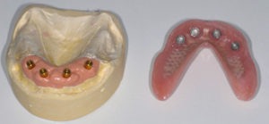 The implant retained denture consists of 2 parts – the implants and the denture.